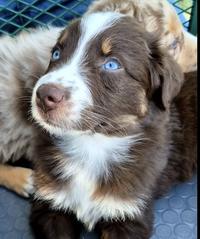 Feeding depends on age, size, and activity level. Most Aussie puppies do well on 2 to 3 small meals a day until 3 months, then transition from 1 to 2 meals a day. Always use high-quality puppy food with proper protein and fat levels. At Iron Side Ranch, we walk our clients thru feeding steps and the best foods to feed. Our puppies are eating twice a day when they go home.
