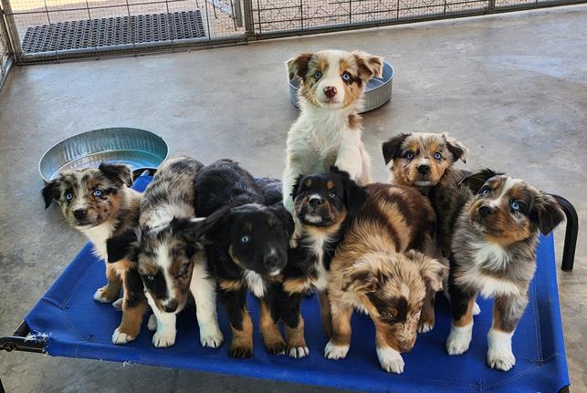 Puppies will be blue/red merles, red/black tris with blue, or duel colored eyes!